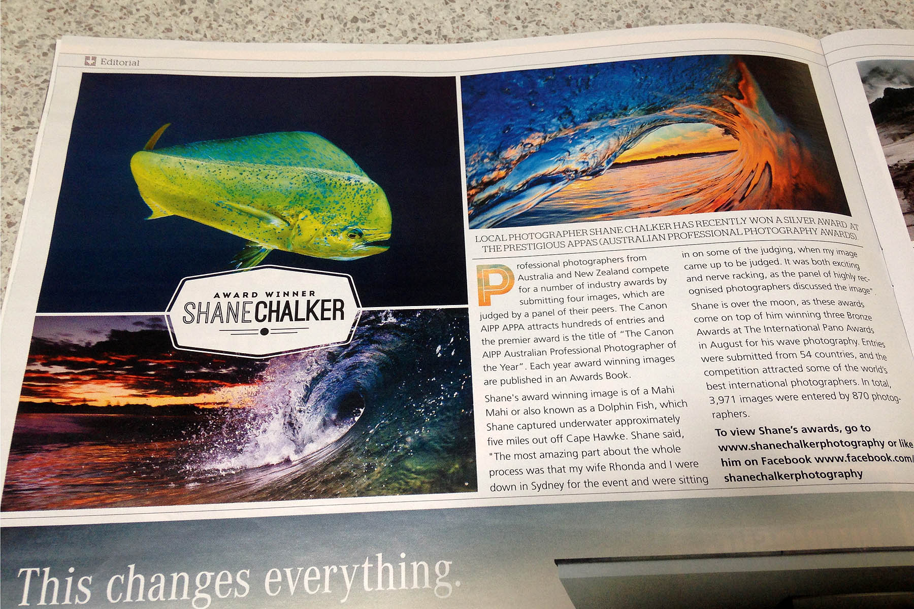 Shane has won many National and International awards in various categories where its standard is judged against the best in the industry. Shane Chalker Photography has also been recogonised on a business level winning an award for Excellence in marketing at the Forster Tuncurry and District Business excellence awards.
