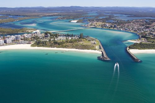 Aerial view of Wallis Lake in the twin towns of Forster and Tuncurry, NSW.